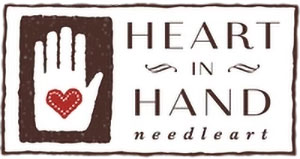 Fiche diagramme point de croix (en noir et blanc) du créateur Heart in hand, contenant un sachet de perles.